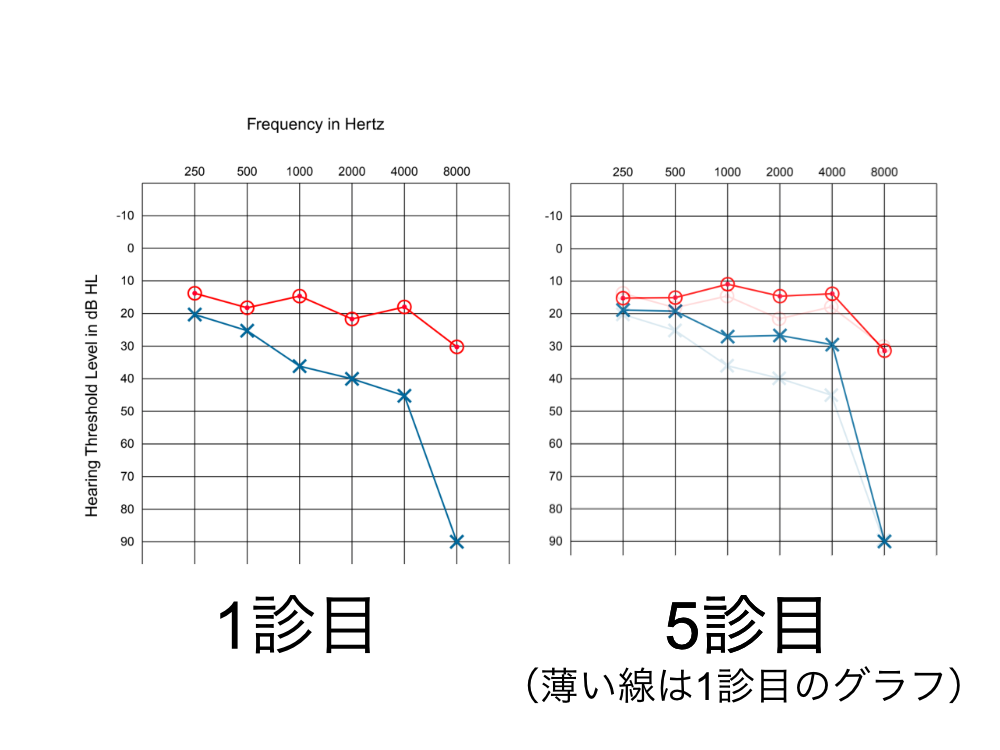 突発性難聴や耳鳴りといった耳の症状は、いかに早期に治療を開始できるかが鍵となる。 本例では、患者に既往があったため迅速な対処が重要であることを知っていたこと、服薬での治療が行き詰まった後、比較的早く鍼という選択したことなどがプラスにはたらいたといえる。 また、施術の間隔を短くし(週に2〜3回が目安)、間をおかずに適切な刺激を入力できたことでうまく身体の変化を呼び起こすことができた。ただ、高音部の聴力は変化しなかった。 「発症後できる限り早く(1ヶ月以内)」、「施術間隔を短く」、という2つの要件を満たすことで、改善の確率は大幅に高まることが確認できた例となった。